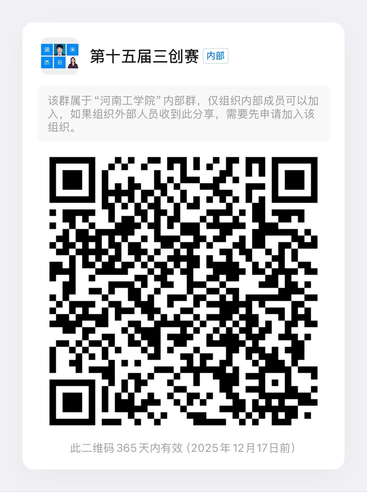 各有意报名参赛的团队请于2024年12月28日前钉钉扫码加入参赛群,以便接收相关竞赛通知。